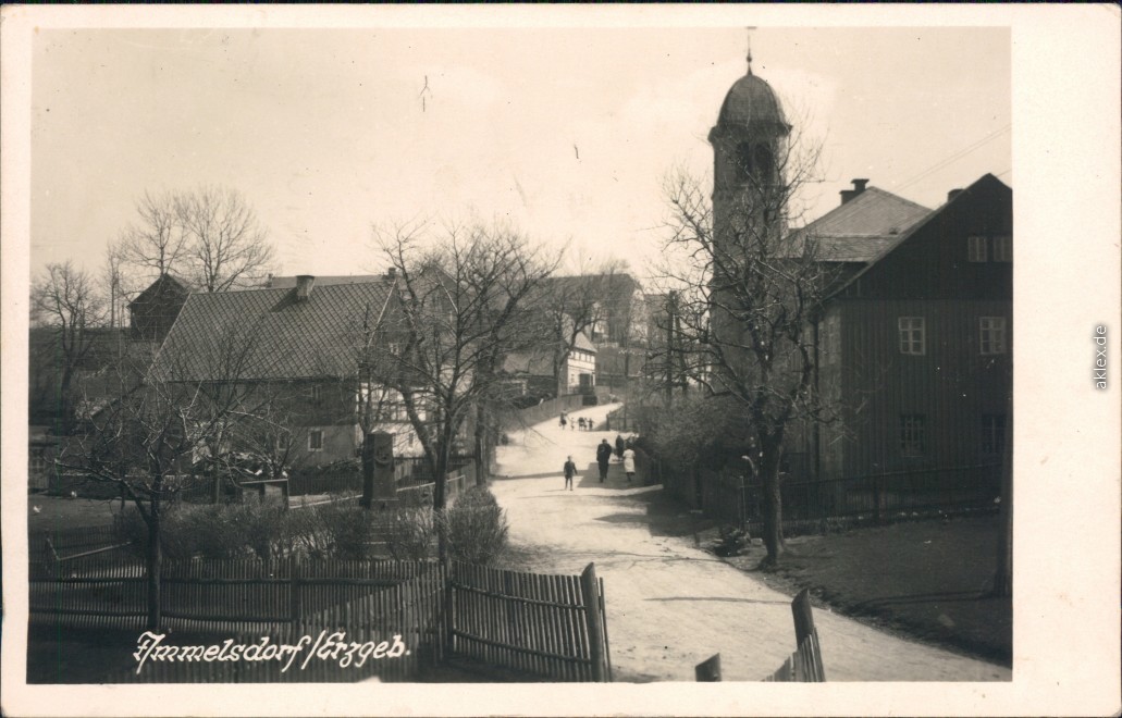 Ansichtskarte: Straße, Häuser, Kirche - Ammelsdorf-Dippoldiswalde