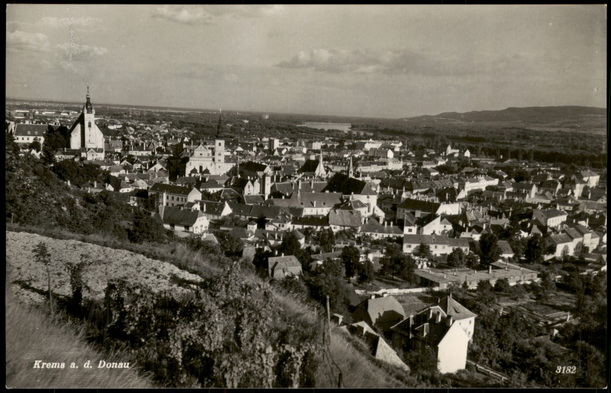 Ansichtskarte: Blick vom Hang auf die Stadt Fotokarte - Krems (Donau)