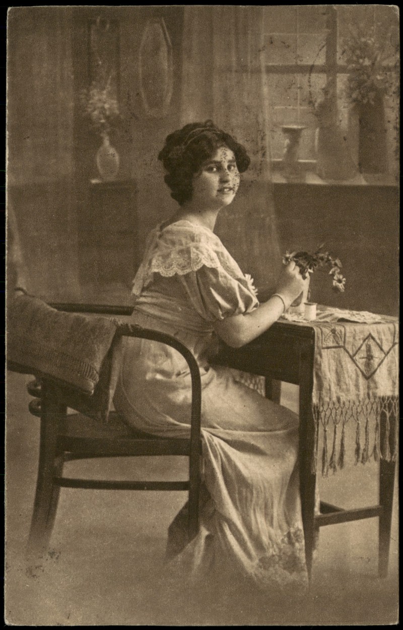Ansichtskarte: Menschen Soziales Leben Frau schaut verträumt am Schreibtisch