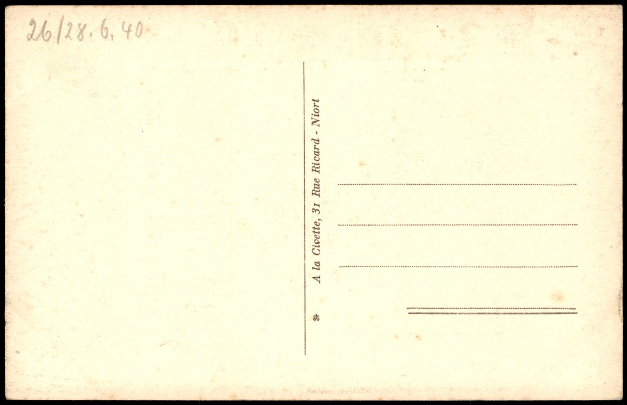 - Historische Ansicht des Donjons von Niort, einer imposanten mittelalterlichen Festungsanlage, aufgenommen von einer gepflasterten Straße aus. Die Karte wurde vom Verlag A la Civette in Niort herausgegeben und trägt die Seriennummer 123.