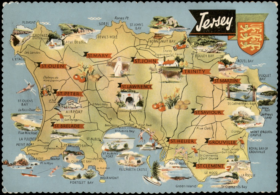 Ansichtskarte: Illustrierte Landkarte der Insel Jersey - Jersey