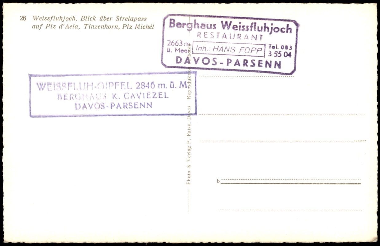 Foto Karte: Weissfluhjoch, Blick über Strelapass auf Piz d'Aela, Tinzenhorn, Piz Michél - Davos