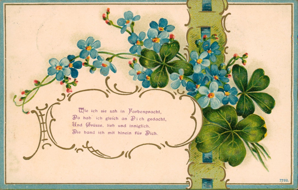 - Liebes Gedicht Kleeblatt Veilchen Goldornament