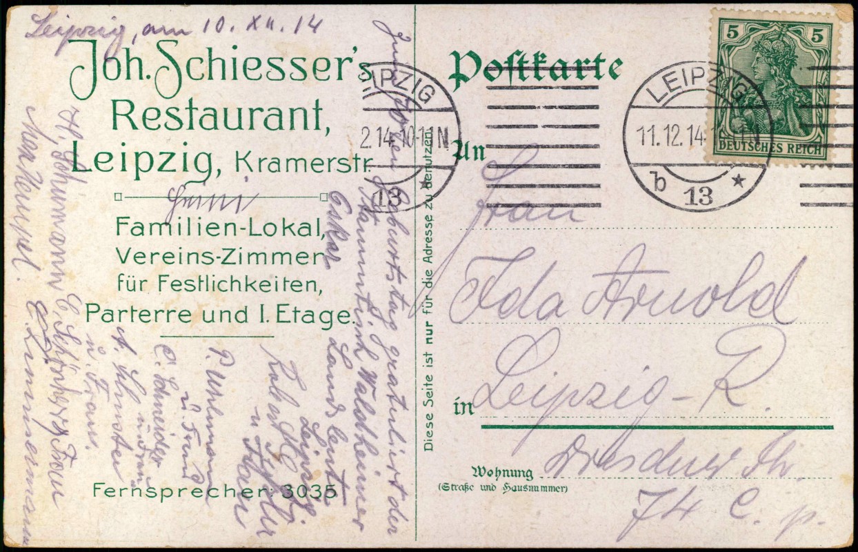 Ansichtskarte: Joh. Schiesser's Restaurant Saal - Kramerstraße - Leipzig