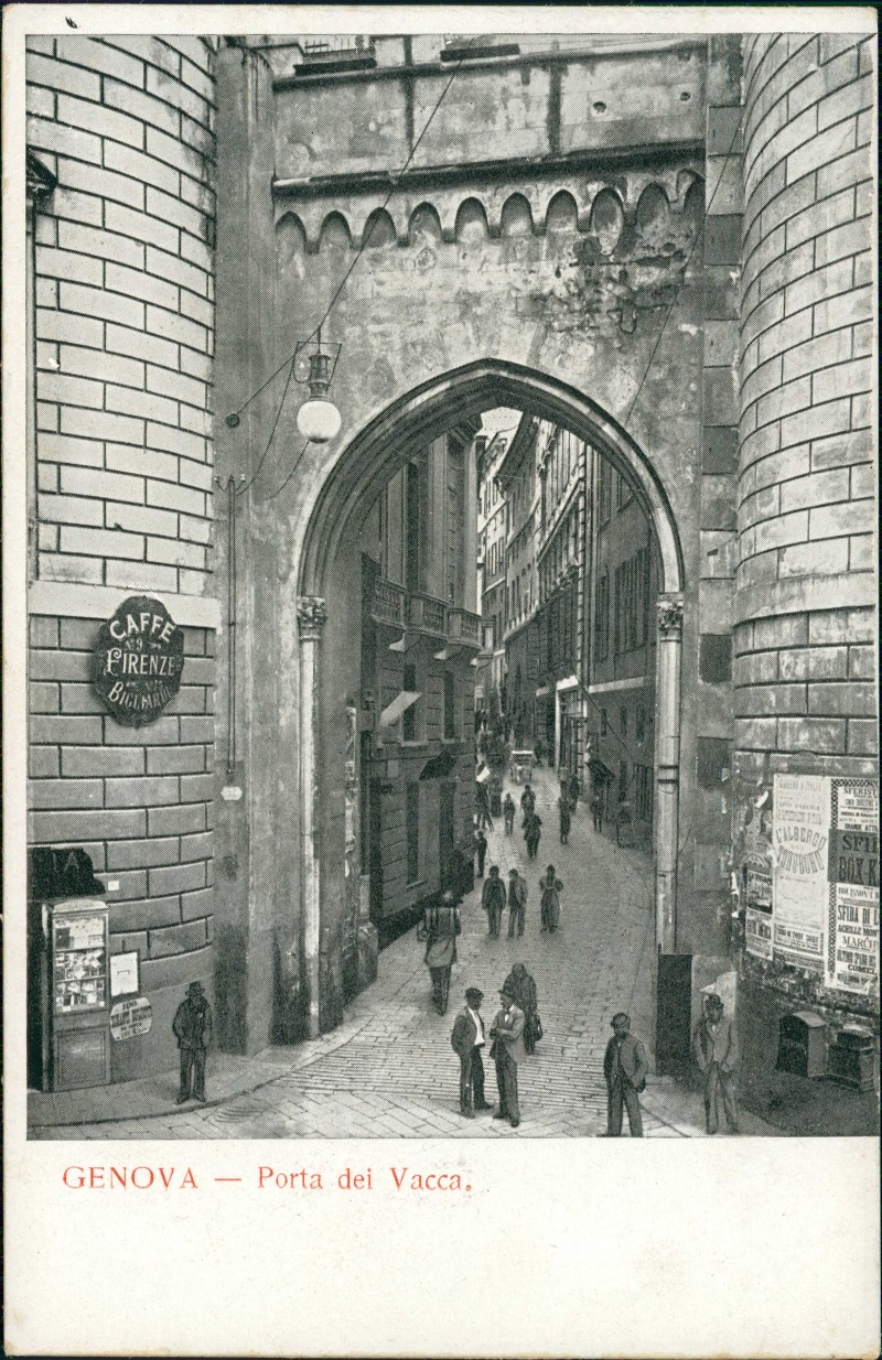 Ansichtskarte: Porta dei Vacca. Caffe Firenze Straßenblick - Genua