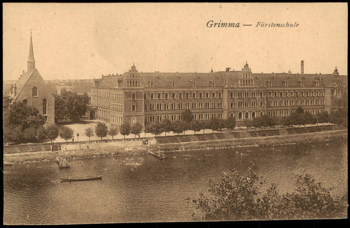 Ansichtskarte: Fürstenschule - Ruderer Badende - Grimma