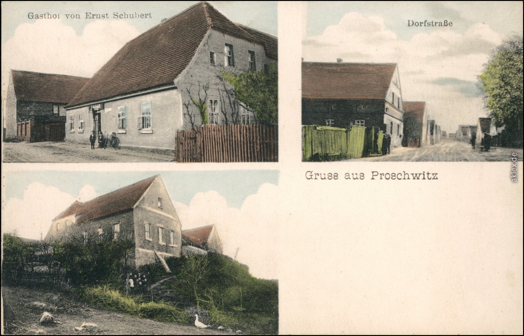 Ansichtskarte: 3 Bild: Dorfstraße, Gasthof - Proschwitz