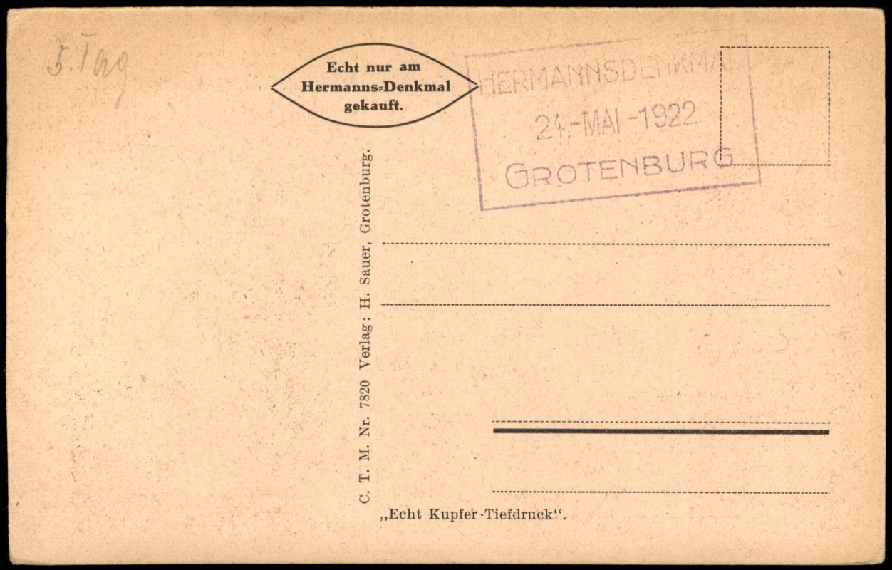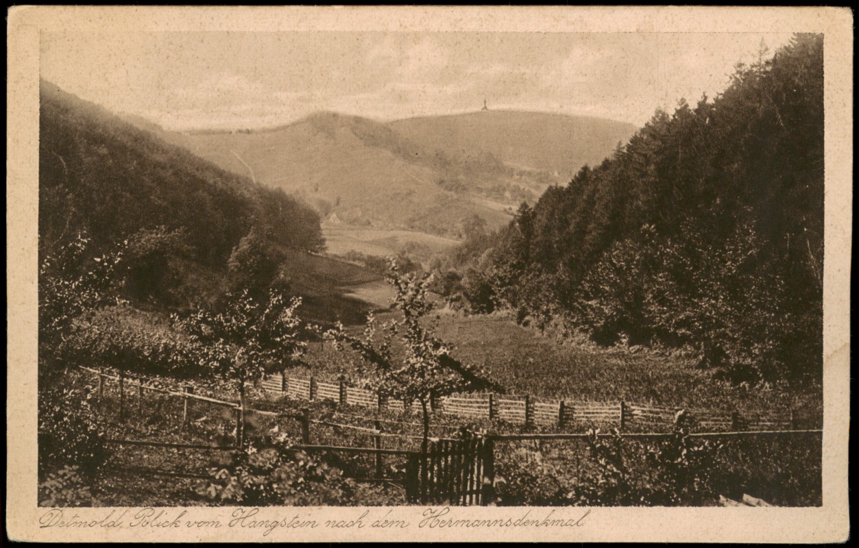 historische Ansichtskarte von 1920: Umland Blick zum Hermannsdenkmal:: Hiddesen-Detmold Adressseite