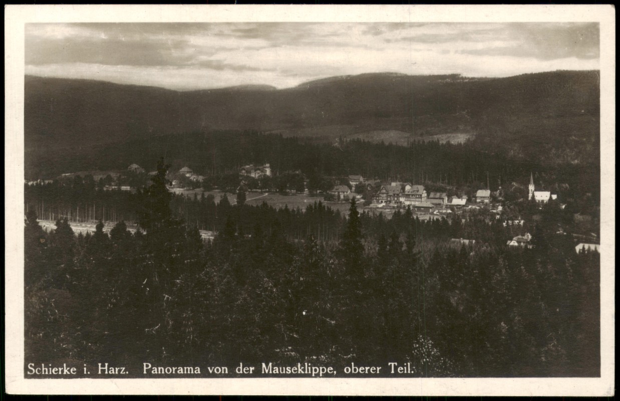 historische Ansichtskarte von 1935: Harz Panorama von der Mauseklippe, oberer Teil.:: Schierke Adressseite