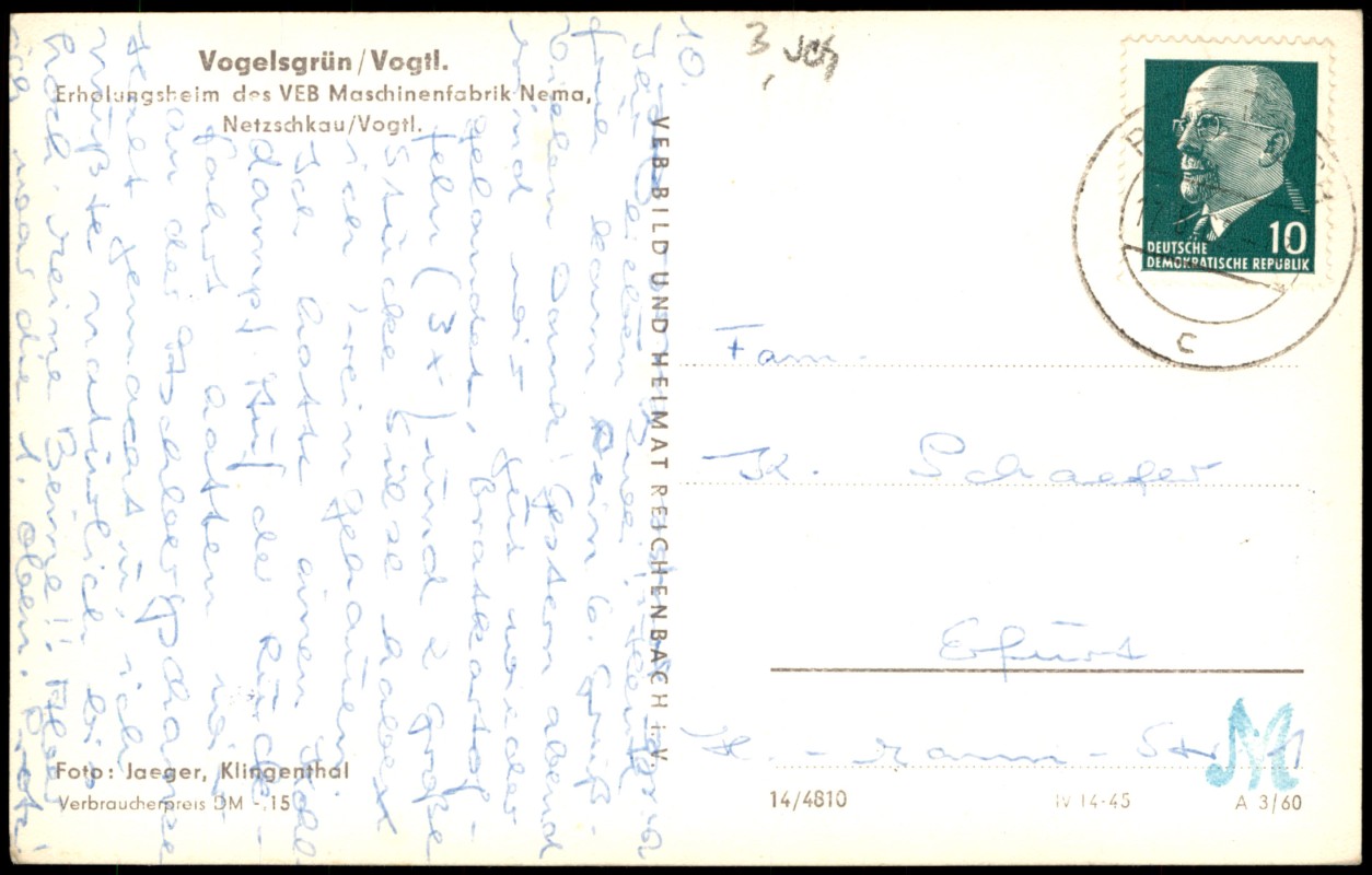 Foto Karte: Erholungsheim des VEB Maschinenfabrik Nema Netzschkau - Vogelsgrün-Auerbach (Vogtland)