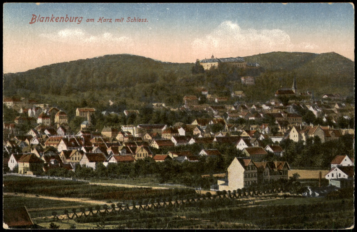 Ansichtskarte: Panorama-Ansicht Ortsansicht mit Schloss im Harz - Bad Blankenburg