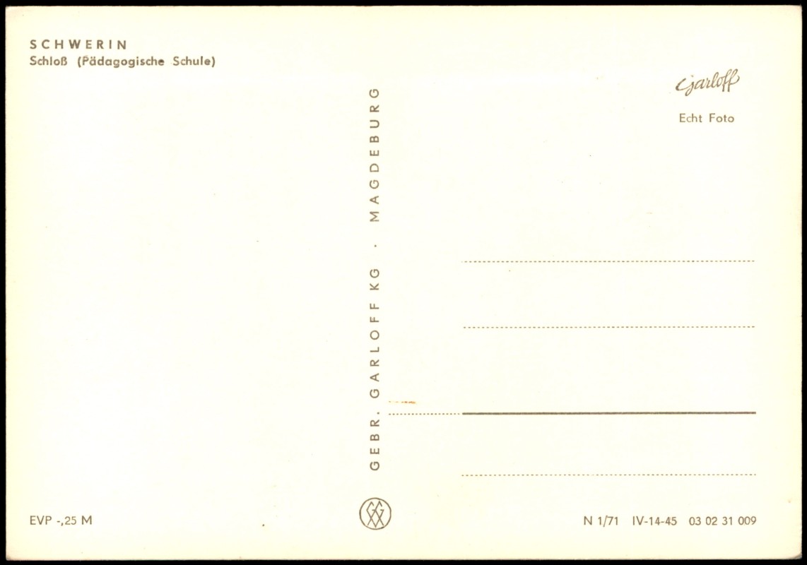 Foto Karte: DDR AK Schloss (Pädagogische Schule) - Schwerin