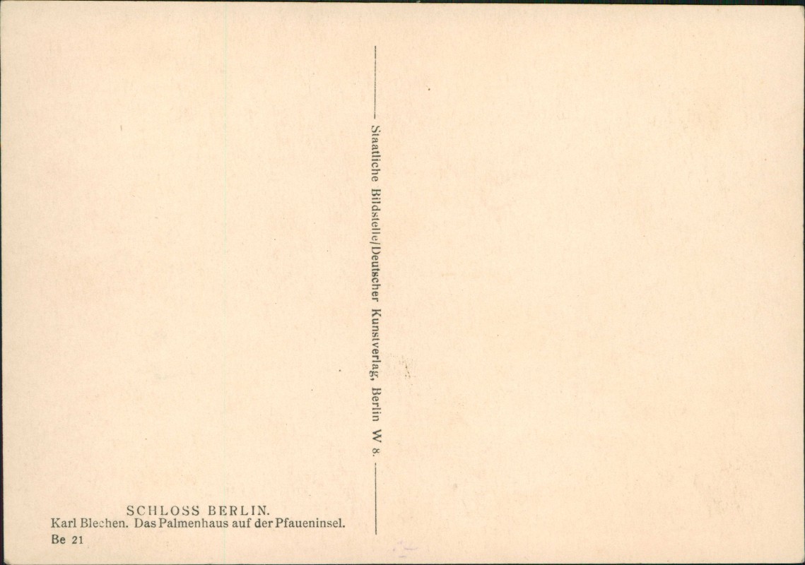 diese Karte können Sie hier kaufen:- Mitte-Berlin Stadtschloss Karl Blechen. Das Palmenhaus auf der Pfaueninsel. 1930