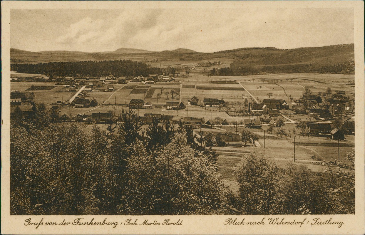 Ansichtskarte: Gruss von der Funkenburg, Siedlung - Wehrsdorf-Sohland (Spree)