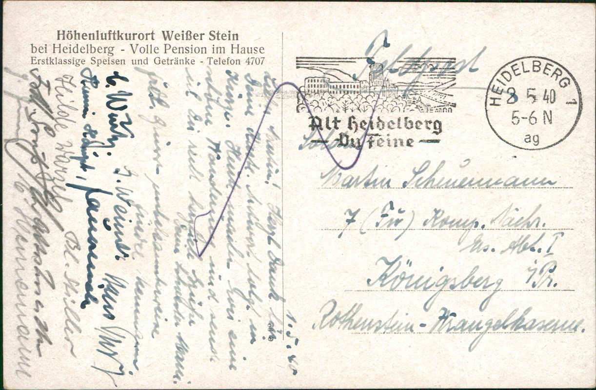 Ansichtskarte: Weißer Stein Pension Wolf - Heidelberg