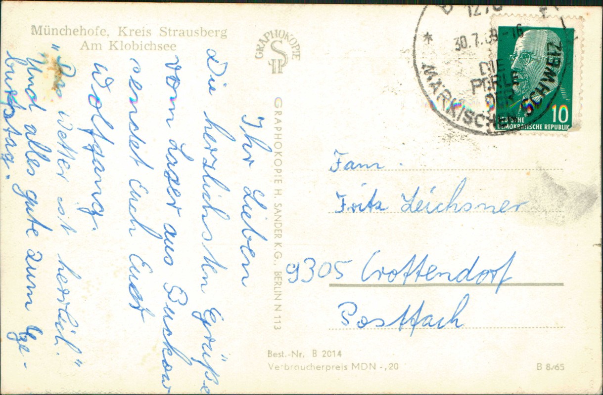 - DDR AK Münchehofe, Kreis Strausberg Am Klobichsee